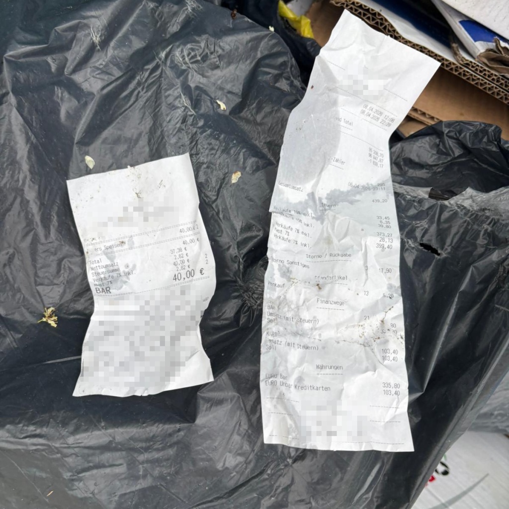 Vor wenigen Tagen landen Müllsäcke an einem Feldweg nahe dem Wendehammer im Gebüsch. Ein aufmerksamer Kleingartenbesitzer begibt sich auf Spurensuche und durchstöbert die Säcke nach Hinweisen – und wird fündig: Plastikeimer, Servietten und Kartons verweisen alle auf eine griechische Imbissbude im Stadtosten. Die Quittungen liefern sogar eine Adresse (aus Gründen des Datenschutzes haben wir alle relevanten Stellen unkenntlich gemacht). Das gefundene Material hat der Mann der Polizei übergeben. (lnw)